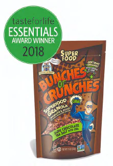 We’re very excited to share that our Bunches of Crunches Dark Chocolate Sea Salt Granola was chosen by Taste for Life as a 2018 Food Essentials Awards Winner in the ‘Granola’ Category!