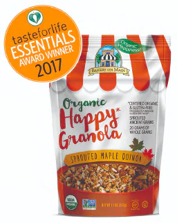 We’re very excited to share that our Sprouted Maple Quinoa Organic Happy Granola was chosen by Taste for Life as a 2017 Food Essentials Awards Winner in the ‘Breakfast Corner’ Category!