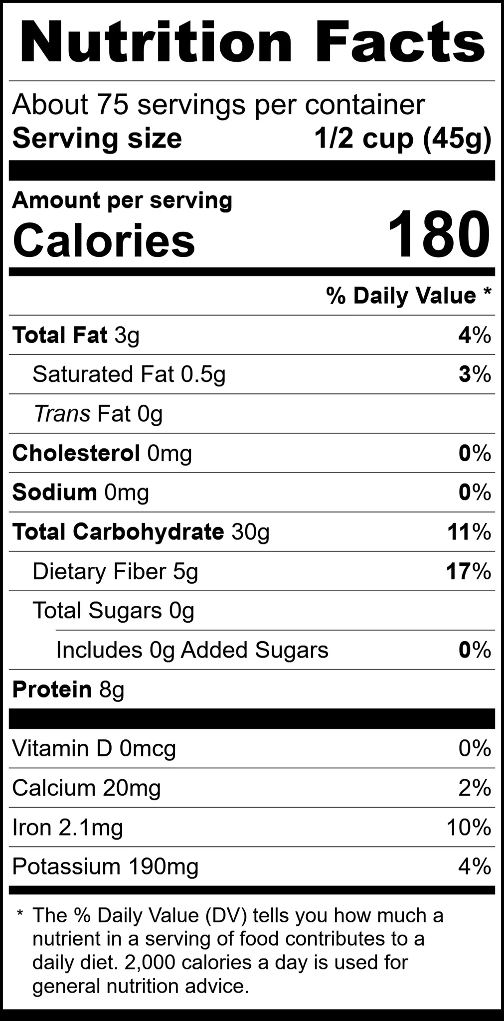 These oats are a good source of fiber in addition to Whole Grain Council approved with 45g or more of whole grains per serving. What’s better is that these oats are vegan friendly, Non-GMO Project verified and processed in a dedicated gluten-free facility. So, bask in the deliciousness and peace of mind while you enjoy our oats for breakfast or baking.