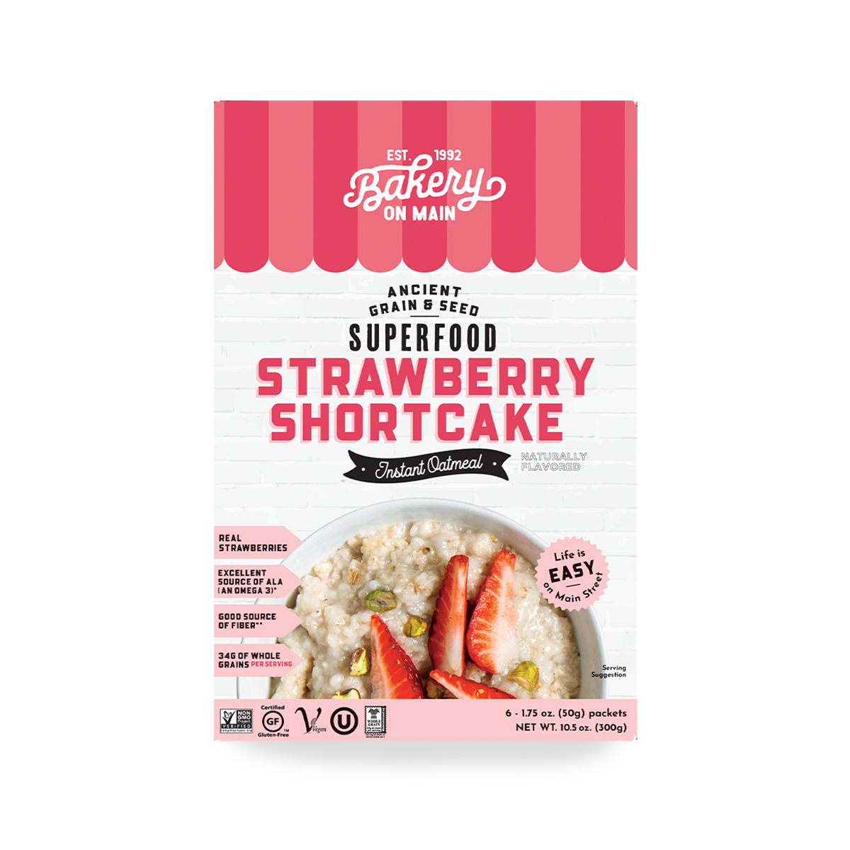 Combining a unique blend of certified gluten-free oats, ancient grains, and the mouthwatering flavor of sweet strawberries, you won’t be able to resist the deliciousness of our Strawberry Shortcake Instant Oatmeal!